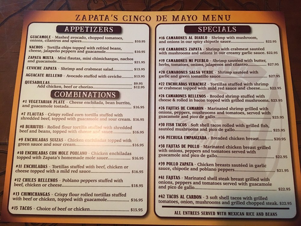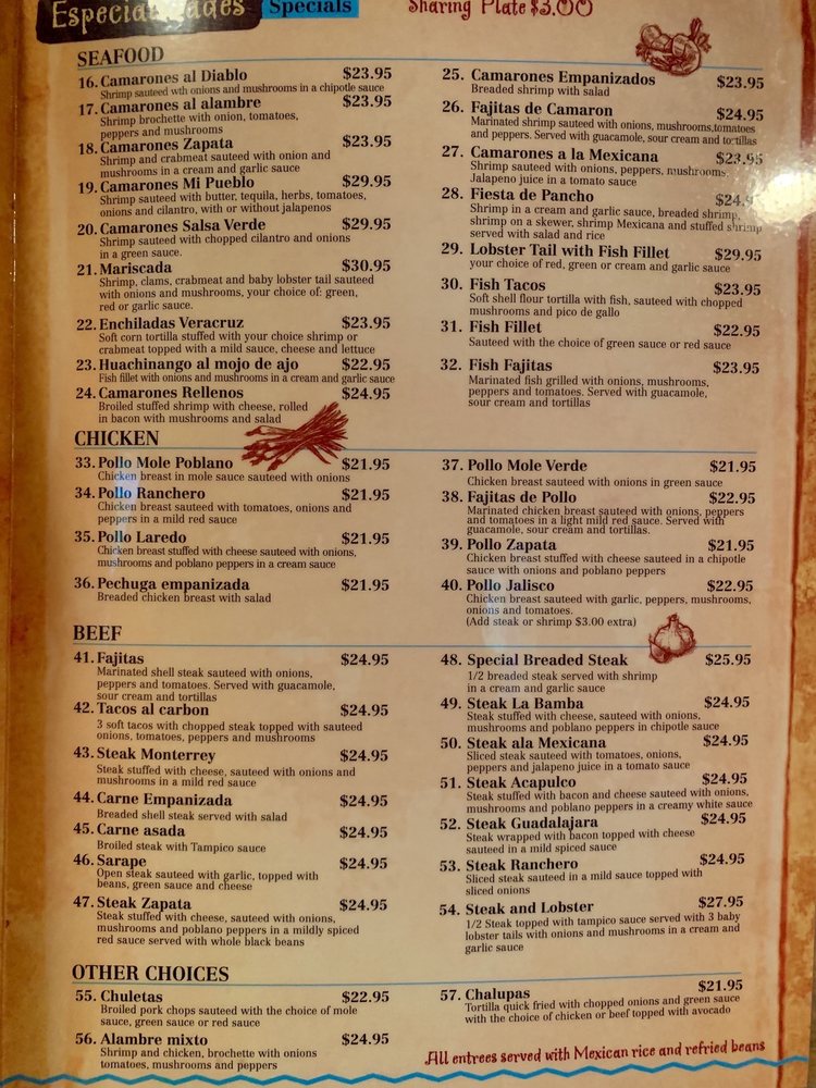Zapata, a Mexican restaurant in Palisades, NY, offers a wide range of delicious dishes. From seafood appetizers like Aquacate Relleno and Ceviche Puerto Vallarta to traditional Mexican appetizers like Chilaquiles and Guacamole, Zapata's menu caters to various preferences. The soups, including Sopa De Albondigas and Sopa De Pollo, are flavorful and comforting. The restaurant's casual atmosphere with outdoor seating, a full bar, and free Wi-Fi makes it a great spot for a relaxed dining experience. With options for vegetarians, group dining, and children, Zapata ensures a pleasant meal for everyone. For a taste of authentic Mexican cuisine with excellent service and a welcoming ambiance, Zapata is a must-visit restaurant in Palisades.